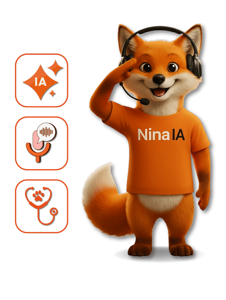 A Nina é a IA que fica integrada diretamente à ficha clínica do nosso sistema. Ela foi criada para eliminar o trabalho repetitivo do veterinário e transformar cada atendimento em algo muito mais rápido, organizado e seguro.